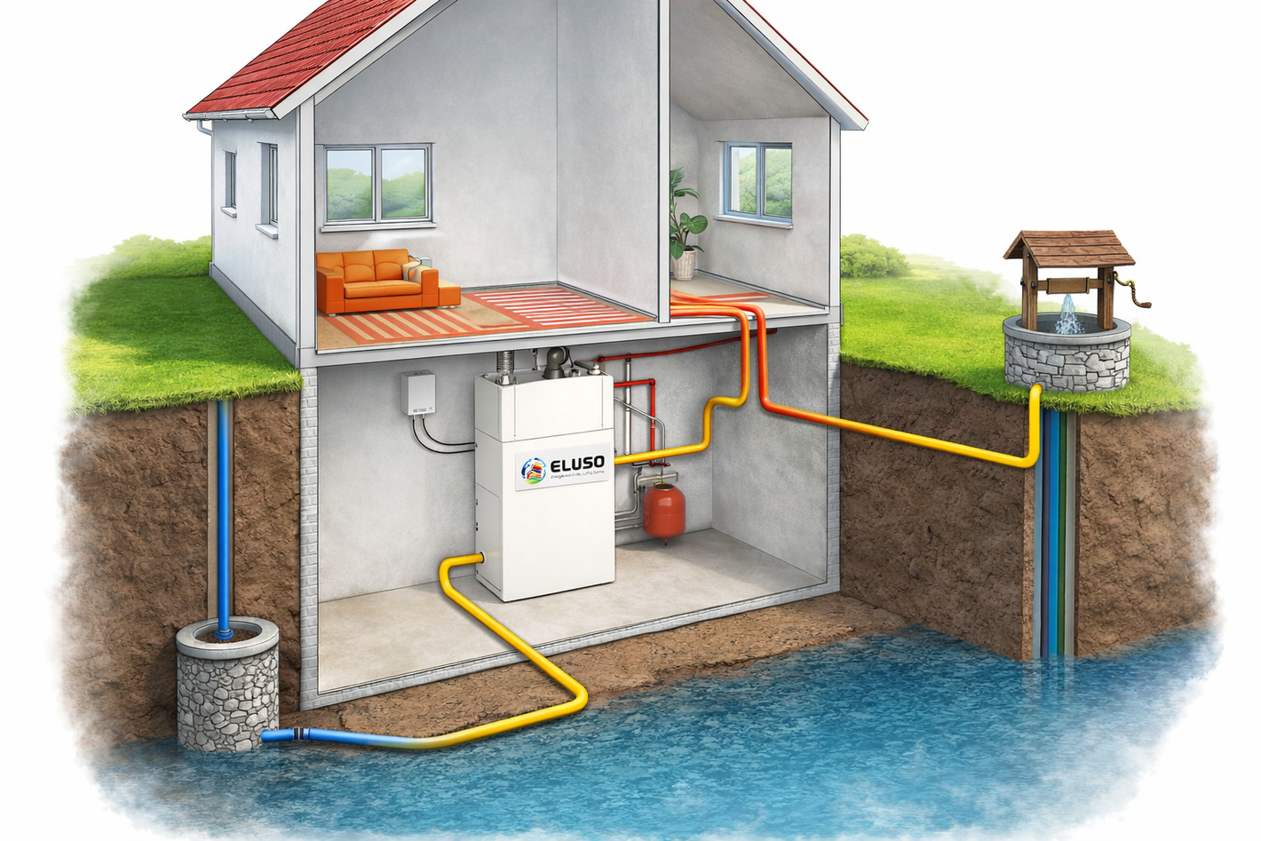 Beispiel Erd- oder Wasser/Wasser Wärmepumpe